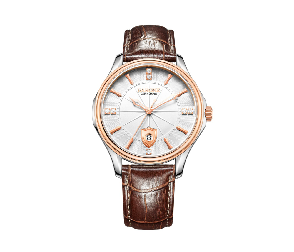 相對于演藝之路系列的個性,雷諾“騎士商務(wù)”系列更加適合搭配正裝。作為公司老板的湯帥,偏正裝的衣服是日常穿著首選,搭配騎士商務(wù)系列更襯托其整體氣質(zhì)。該表盤上的盾牌造型與劍型指針獨具特色,7顆天然水晶刻度散發(fā)雅致光芒、底蓋蝕刻揚劍騎馬的騎士造型,表款詠贊騎士精神,突顯時代精英的力量。