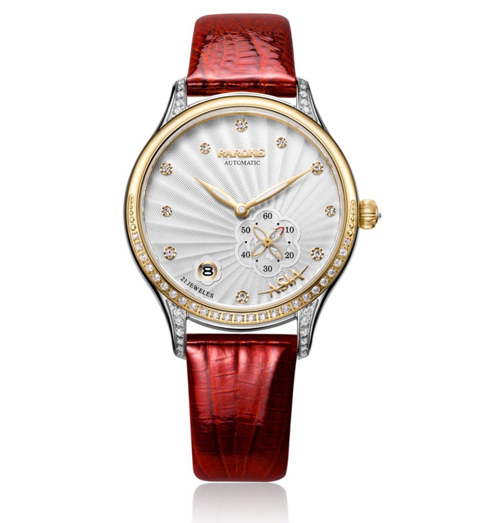 博鰲鼎智系列星月女表充分運(yùn)用花瓣、星空、月牙等設(shè)計(jì)元素,結(jié)合商務(wù)腕表精簡要求,突出當(dāng)代女性的優(yōu)雅和智慧特征,充滿唯美和時(shí)尚的風(fēng)格氣息。60秒功能小眼,四葉花瓣形秒針,設(shè)計(jì)獨(dú)特,輕巧靈動(dòng);10顆水晶刻度猶如星空中點(diǎn)綴的繁星點(diǎn)點(diǎn),大小不一,錯(cuò)落有致,營造無限唯美的意境;表圈鑲嵌月牙形水晶石,更加閃耀璀璨。