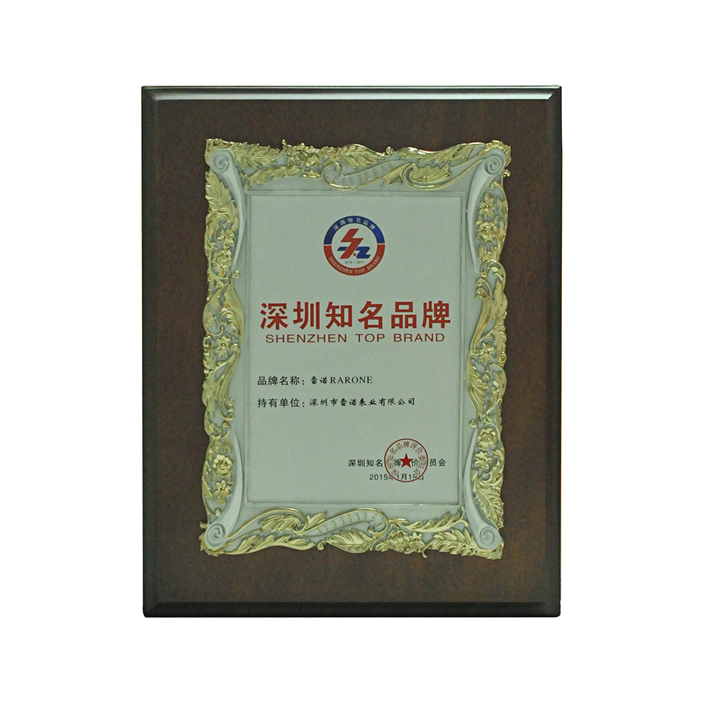 雷諾RARONE“深圳知名品牌”榮譽牌匾