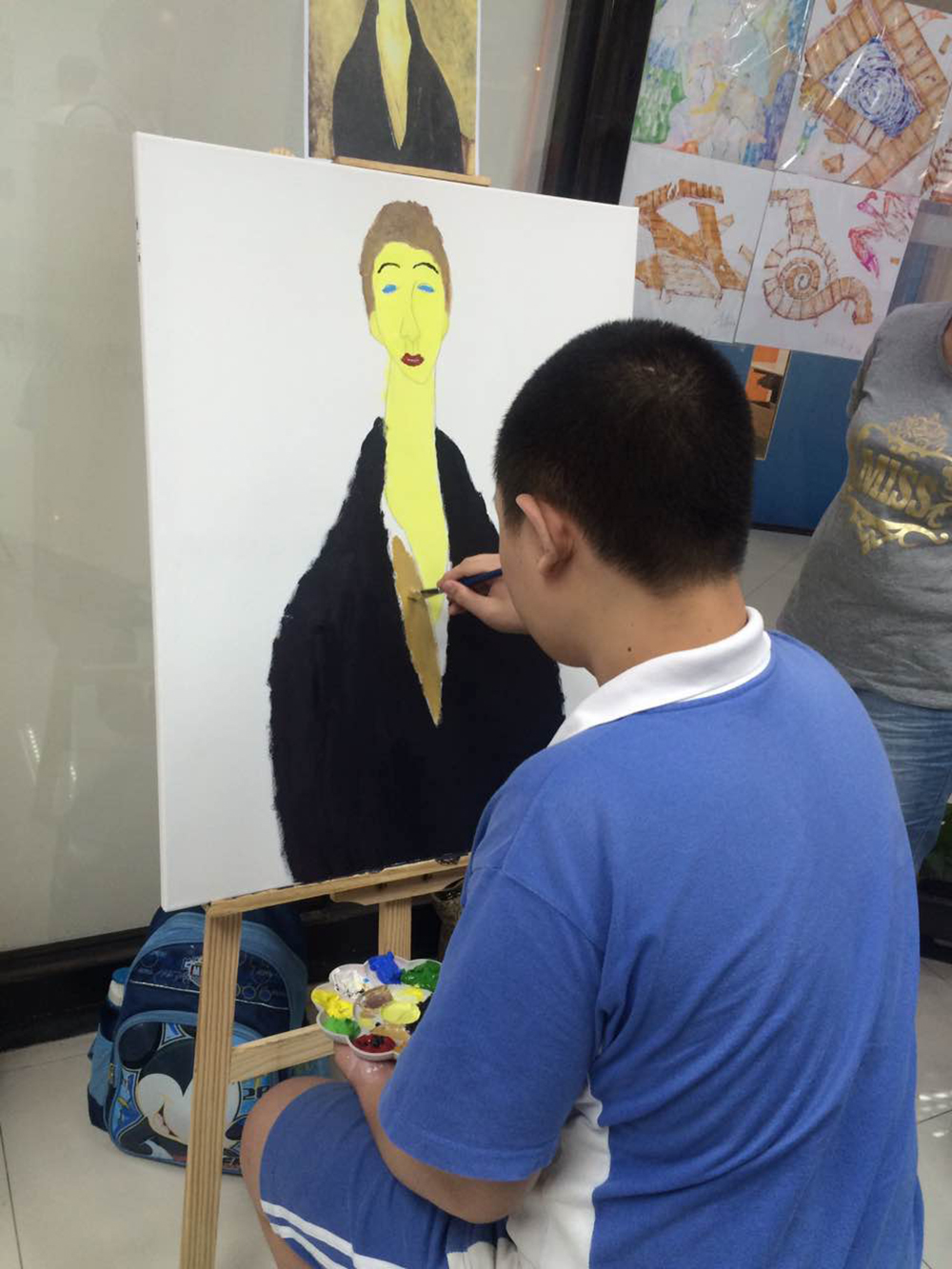 繪畫老師說:這批孩子雖然繪畫功底不一,但拿起畫筆來都十分投入。比起普通學繪畫的孩子,他們的下筆更加果斷,不受條條框框約束,敢于畫出自己的所思所想,這是非常可貴的。作為老師我們要更多地在情感上和孩子們進行交流,還要保留他們創作的個性。”